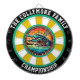 En cirkelformad krokodildesign med en vass målfunktion i en sjö-inställning.