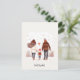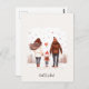 Ett snyggt vykort som går tillbaka till skolan med en illustration av en familj på tre där föräldrar håller händer med barnet.