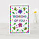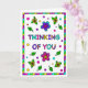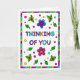 Cute colorful whimsical hand plockade Tinking of You greeting card for a kompis or family Member. Insidan är en sida med bonusfärgning.