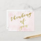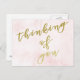 NewParkLane - vykort för Elegant, med 'Thinking of you' i elegant faux guld-skript typografi, mot vattenfärgsbakgrund för rosa.
