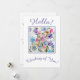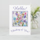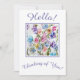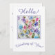 Hej Thinking of You Card för att skicka tillfälle - Whimsical Butterfly och blomsterträdgård som målats från hund som doppats i färg - sommar färg av blått, rosa, grönt, tassar och orange. En unik inbjudan till studenten, födelsedagar, årsdagar, möhippa- eller babyduschar, pension eller återunioner - bilder från designerns ursprungliga vattenfärgsmålning.