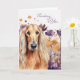 Jag tänker på dig hälsning för hundälskare och särskilt på dem som plågar afghanska hundar. En illustration av en blommigt-skugga i par med rikens lila med ett roligt-meddelande.