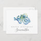 En vattenfärgskort för födelsedagsgratulationer som skickar kärlek och välgång från fjärran! Denna enkla design visar min egen handmålade vattenfärg i blått bläckfisk med "Grattis på födelsedagen" i modern typografi och mottagarens namn i handskrivna bokstäver. Använd mallfälten för att lägga till din egen information och personliga hälsning. Ett nautiskt men sofistikerat val för födelsedagsönskningar. Designad av Victoria. För fler postkort med bläckfisk i beachstil, besök www.zazzle.com/vginvites
