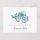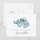 En vattenfärgskort för födelsedagsgratulationer som skickar kärlek och önskningar från fjärran! Denna enkla design har min egen handmålade vattenfärg blå bläckfisk med "Grattis på födelsedagen" i modern typografi och mottagarens namn i handskrivna bokstavstypsnitt. Använd mallfälten för att lägga till din egen information och personliga hälsning. Ett nautiskt men sofistikerat val för födelsedagsönskningar. Designad av Victoria. Besök www.zazzle.com/vginvites för fler strandinspirerade bläckfisk-kort.