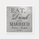 Ät dryck och gift dig med havets pappra blöjor från silver glitter. Elegantens skripttypografi för klassvis bröllopsfest. Snyggt, handskriven kalligrafi i kombination med chic formell typsnitt. Trendig-mall med anpassadets färg i bakgrunden. Slogan för vintage för den orustiska land-chicens middag bord. Även underbar för lyxliknande repetitionsmiddagar. Personlig med namn av brud och brudgumm plus datum för giftermål. Vackra shimmer och bröllop-dekan med blängla. Shiny faux silvery sparkly sparkles och glitterglimmer. Luxy stil.