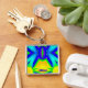 ATTICUS ~ Blå Grönt och Gult ~ Fyrkantig Silverfärgad Nyckelring