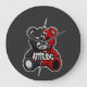Gör ett djärvt uttalande med denna kantiga och iögonfallande "Attitude Split Bear"-design. En vild teddybjörn i delade färger, tudelad av en skarp blixt — till hälften svart, till hälften blodröd — med signatur-X-ögon och droppande "ATTITUDE"-graffiti-text tvärs över bröstet.