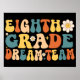 Retro Groovy 8:e klass-drömlaget roliga lärare och student T för barn, flickor, pojkar, kvinnor och manar. Fantastisk matchande back to school-utrustning för drömteam 8:e åttonde klass-lärarna och studenter. Cute Groovy garanterar att du startar ditt 8:e skolår i klass. Lärare och student roliga drömteam som gillar matchning... Underbar 8:e klass-uppskattning för pappa, mamma, son, dotter, vän, medarbetare, syster, bror, student och lärare. Ta den till Back to school, första skoldagen, 100 dagar i skolan...