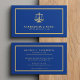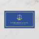 Lawyer legal conselor attorney at law firm elegant gold and royal blue business card with scales of justice logo, and simple modern minimalist typography. Suitable for a law firm, professional legal practitioner, judge, solicitor, or consultant.