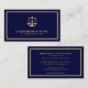 Lawyer legal conselor attorney at law firm elegant gold and navy blue business card with scales of justice logo, and simple modern minimalist typography. Suitable for a law firm, professional legal practitioner, judge, solicitor, or consultant.