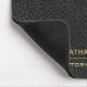 A modern, simple, clean minimal faux black leather effect desk mousepad for an attorney, with gold typography on black. Made of 3mm thick neoprene material with polyester top. Modern minimal style. Add your name and title. you may also delete the text for title, and use your name only. A perfect gift for a business professional's office desk, or college student.