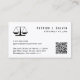 Affärskortet om minimal professionell och elegant för advokater och juridiska professioneller med en illustration av rättskipningsskalorna och ditt namn, titel (Attorney at Law, Counselor, Partner, etc.) och kontaktinformation (t.ex. e-post, telefonnummer, fast namn och utskickande adress) i enkel och modern skrift. Ange en URL-adress adress för att skapa en skannerbar QR-kod som är länkad till webbplatsen, medieprofilerna i social eller någon annan plattform som visar ditt arbete, skapar det enkelt för andra att utforska din expertis. På baksidan anpassar du ytterligare text eller lämnar tom.