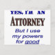 Ja, jag är advokat, men jag användor mina befogenheter för bra att säga. Lustigt slagord för professioneller i rättskapitalet brev i blues och .