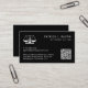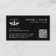 Affärskortet för minsta och elegant svarta professionell för advokater och juridiska professioneller med en illustration av rättskipningsskalorna och ditt namn, titel (Attorney at Law, Counselor, Partner etc.) och kontaktinformation (t.ex. e-post, telefonnummer, fast namn och utskickande adress) i ren, enkel och modern skrift. Ange en URL-adress adress för att skapa en skannerbar QR-kod som är länkad till webbplatsen, medieprofilerna i social eller någon annan plattform som visar ditt arbete, skapar det enkelt för andra att utforska din expertis. På baksidan anpassar du ytterligare text eller lämnar tom.