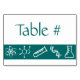 Bord-kortet har ett accentband i djup teal med ett vetenskapligt temat mönster av planetära modellatomer, DNA-strängar, teströr, bakers och koffeinmolekyler som dekorerar det. Det lämnas mycket utrymme ovanför bandet så att du kan fylla i gästernas namn eller bordsnummer, så att sittplatsen kan gå smidigare vid din geeky-händelse. Se till att kontrollera de andra produkterna i de attraktiva krafterna i Teal-setet för att skapa en verkligt samordnad sökning efter din händelse.