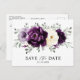 Elegant blomsterlig midsommar-sparat-datum postkort med en bukett av akvarellrosor, peonior i nyanser av lila plommon, champagnekrem vita blommor och salvia, frodiga gröna botaniska eukalyptusblad. Hitta fler matchande designer och variationer i min "blissweddingpaperie"-butik. Och tveka inte att kontakta mig för ytterligare anpassning eller matchande artiklar.