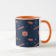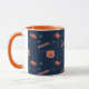 Denna utformning av mönster har Auburn Universiteten emblematic "AU"-logotyp i fet marinblått med en orange kontur. Ord "Auburn" visas i stiliserat, versalblått brev med orange, vilket ger en framträdande kontrast mot den vita bakgrunden. En ytterligare bild av en tigers ögon, innesluten i en oval form med orange gräns, förstärker Auburns ikoniska maskcot. Sprid över designen är minimalistiska starstformer och små prickar i marblått, vilket ger en festlig och dynamisk beröring som kompletterar universiteten-andan och färg.