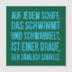 Seemannsspruch "Auf jedem Schiff, das schwimmt und schwabbelt, Ist einer drauf, der dämlich sabbelt." als hellblaues Lettering.