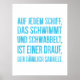 Seemannsspruch "Auf jedem Schiff, das schwimmt und schwabbelt, Ist einer drauf, der dämlich sabbelt." als hellblaues Lettering.