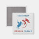 Utformning som visar en riddare som kämpar mot en drake och ord: Auktoriserad Dragon Sayer.