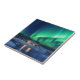 Snygg keramisk titel med vacker Aurora borealis över vinterstuga.