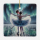 Två graciösa skridskoåkare utför en magisk balett på en glödande frusen sjö under skimrande norrsken. Detta drömlika vinterkonstverk fångar elegans, rörelse och den förtrollande skönheten hos is och ljus.