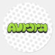 Auroran namn i texten grönt retro tecknad bubblegum stil.