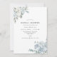 I inbjudningskort för möhippan finns elegant med dammiga blå och vita blommigtar och ett elegant minimalistiskt teckensnitt. Inbjudan är perfekt för alla enkla och klassiska händelser.