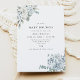 Den här babyduschen har en dammig blå och vit blommigt i eleganten och ett minimalistiskt teckensnitt i eleganten. Inbjudan är perfekt för alla enkla och klassiska händelser.