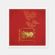 Golden papper-cut av en räv in i en kvadrat + guldkinesiska gula moln (linjegrafik) + mörk röd kinesisk ramar i de fyra hörnen. Utformning på papper napkin med röd bakgrund och text: 2021, The Year of The Ox and Gott nytt år för att anpassa om du vill (framtill). Matchande papper plåt, hälsningskort, vykort för helgdagar, inbjudan, hantverk, party-förråd och mycket annat... Perfekt för kinesiska nyåret Ox 2021 eller födelsedagen (personer födda under Ox-året).