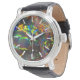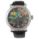 Australian Fire Opal tändes från baksidan för att få fram det levande blåa och gult-guld färg. Den här designen har silversskalstreck på klockan ansikte eller hittar samma glitter faux-opal mönster med siffror i samlingen.