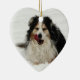 Hund för samlare för australian shepherd för gullig purebredsvart en tri lägger i den kalla snön på en kylig vintereftermiddag. Hon slickar de smakliga fryste flingorna av henne ansikte med en stor rosatunga.