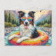 Tri Färg Australian shepherd i en regnbåge flyter AI-genererad färgad