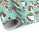 Ett sortiment söta Aussies dekorerar det här när tillfälle slår pappert. Detta kollage med realistiska illustrationer av Australian shepherd hundar i stil ställs mot bakgrund av färgaden av mynta gröntar.