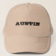 En khaki färgad truckerkeps som säger "AUSTIN" på framsidan. Du kan också utforma ditt eget med egna foton, konstverk, ord och grafik för att skapa en unik amerikansk truckerkeps! Det finns en mängd olika färg att välja mellan, och de finns tillgängliga för manar och kvinnor.