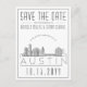 Ett unikt vykort för bröllop spara-till-datum för ett giftermål som tar ställe i den vackra och historiska staden Austin. Inbjudan innehåller en stiliserad illustration av stadens unika skylt med namn under. Detta följs av information om bröllopsdagen i ett matchande öppet, invändigt stil. På baksidan av inlägget finns era uppgifter från adress. Alla enskilda inslag på inbjudan-kortet är olåsta så du kan ändra alla nödvändiga detaljer, t.ex. teckenstorlekar, stilar och mycket mer, genom att använda anpassningsfunktionen. Ha roligt som kreativ och skapar det själv!