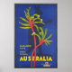 Australia Kangaroo Paws Vintage Travel Poster