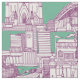 Australian toile de jouy, originally drawn in ink. Includes Sydney harbour Opera house and Luna Park, Perth Temple, Melbourne skyline, Adelaide Chinatown, Townsville Maritime Museum, Wollongong lighthouse. heart reef, Bondi beach.