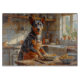 Bring energy and charm into your kitchen with this Australian Cattle Dog design featuring a lively pup cooking in a cozy farmhouse setting. With its speckled coat, alert ears, and playful chef pose, this artwork captures the hardworking and spirited nature of the breed.