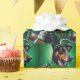 En vän i håriget bakom handlebarna från en grönt som är blankt och som har en grönt Saint patrick's day som gör att huvudena svänger. Hund är klädd i en festlig ensemble, komplett med en grönt och en passande top hat som sitter på sitt fula huvud. De stora skammusslorna och leprechaunsarna är mycket bra utformade, och det skapar tydligt att hund är redot att fira Saint patrick's day i stil.
