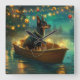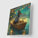 Segla in i höckelsäsongens magi med denna vackert detaljerade illustration, som visar en stolt hund som sitter i en festligt dekorerad båt och glider över en lugn julinsjö. De gnistrande ljusen från närliggande tallar reflekteras i vattnet och sprider ett varmt, festligt sken som förstärker den mysiga stämningen. Prydnader dinglar från båtens sidor medan lysande lyktor lyser vägen och skapar en scen som fångar julens sanna väsen av värme och glädje. Detta nostalgiska konstverk för med sig en touch av högtidsmagi till alla utrymmen, perfekt för dem som värnar om årstidens anda.