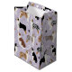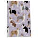 Cute Australian shepherd / Aussie hundar i svart, brun och mullig jackar sittande och stående utspridda hund ben och tass avtryck mot lätt lila.
