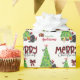 Det upprepade mönster på denna söta julomslutning papper är en bild av en svart och vit Hund i Australian shepherd som bär en röd och vit julhatt. Hund finns bland paket som är en lätt inslagen gåva bredvid ett dekorerat Julgran. En bullfinkfågel landar på träd bakom den. God jul" står i den smidda texten från buffelstolpe, och din egen namnteckning finns i två fält för att du ska kunna anpassa den.