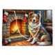 Celebrate the season with this heartwarming illustration of an Australian Shepherd sitting beside a glowing fireplace, wrapped in colorful Christmas lights with festive stockings hanging above. This cozy holiday artwork highlights the Aussie’s loyal, intelligent, and playful spirit—perfect for dog lovers who adore this beautiful herding breed. Ideal for Zazzle holiday gifts, seasonal décor, and anyone wanting a warm and cheerful Christmas design featuring their favorite dog.