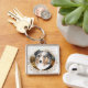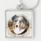 Australian shepherd fyrkantig silverfärgad nyckelring