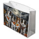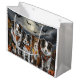 Släpp upp spookandan med den här eerie Halloween-designen med en hundar-förpackning under en mörk, månbelyst himmel, omgiven av flygande fladdermus och glödande pumpor. Perfekt för dem som kärlek en aning skrämmande roligt med sina hårigets vänner!