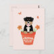 Rolig illustration för vår och sommar för alla hundälskare. Visar en Australian Shepherd som sticker ut huvudet ur en blomkruka omgiven av två blommor och fjärilar.