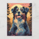 Färgkonst med en australisk-Shepherd i skogen under solnedgången.