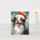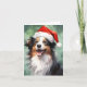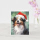 Färgfull och glatt juldesign med Australian shepherd som bär en julhatt.