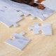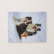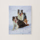 Australian shepherdmanlign och kvinnliga hundar som sitter på snön, spontar ut ur munnen som har lekt after